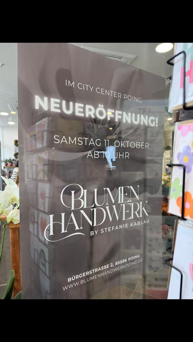 Mit meiner Blumenwerkstatt in der Bürgerstraße 2 in Poing habe ich mir einen Traum erfüllt: Hier entstehen florale Unikate, die ganz persönlich auf dich abgestimmt sind. Ob zarte Pastelltöne oder kräftige Farben, moderne Designs oder klassische Sträuße – ich nehme mir Zeit, um deine Wünsche zu verstehen und umzusetzen.